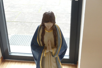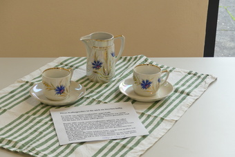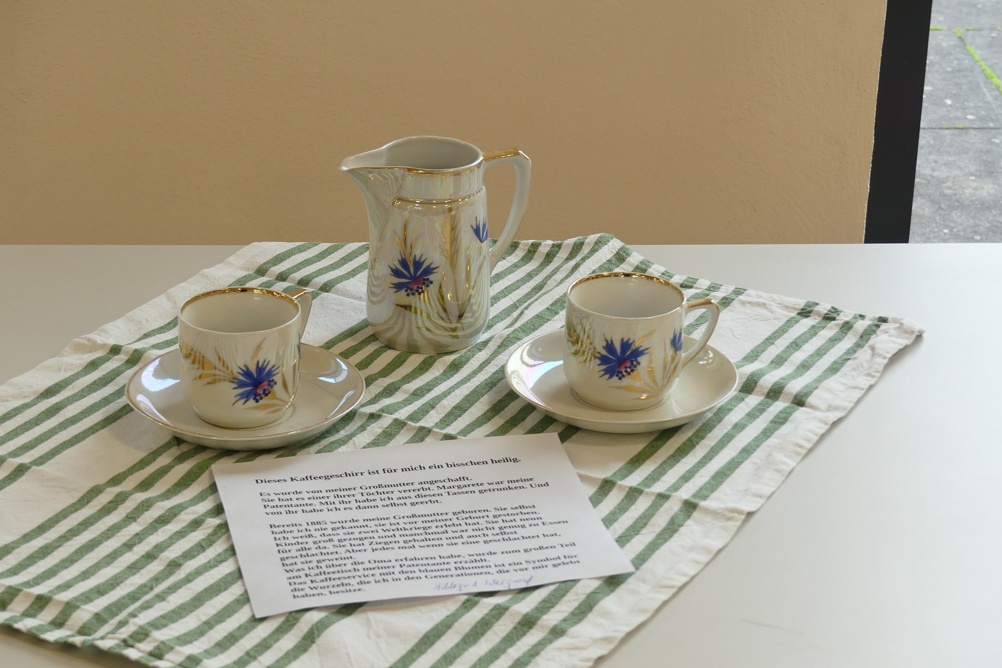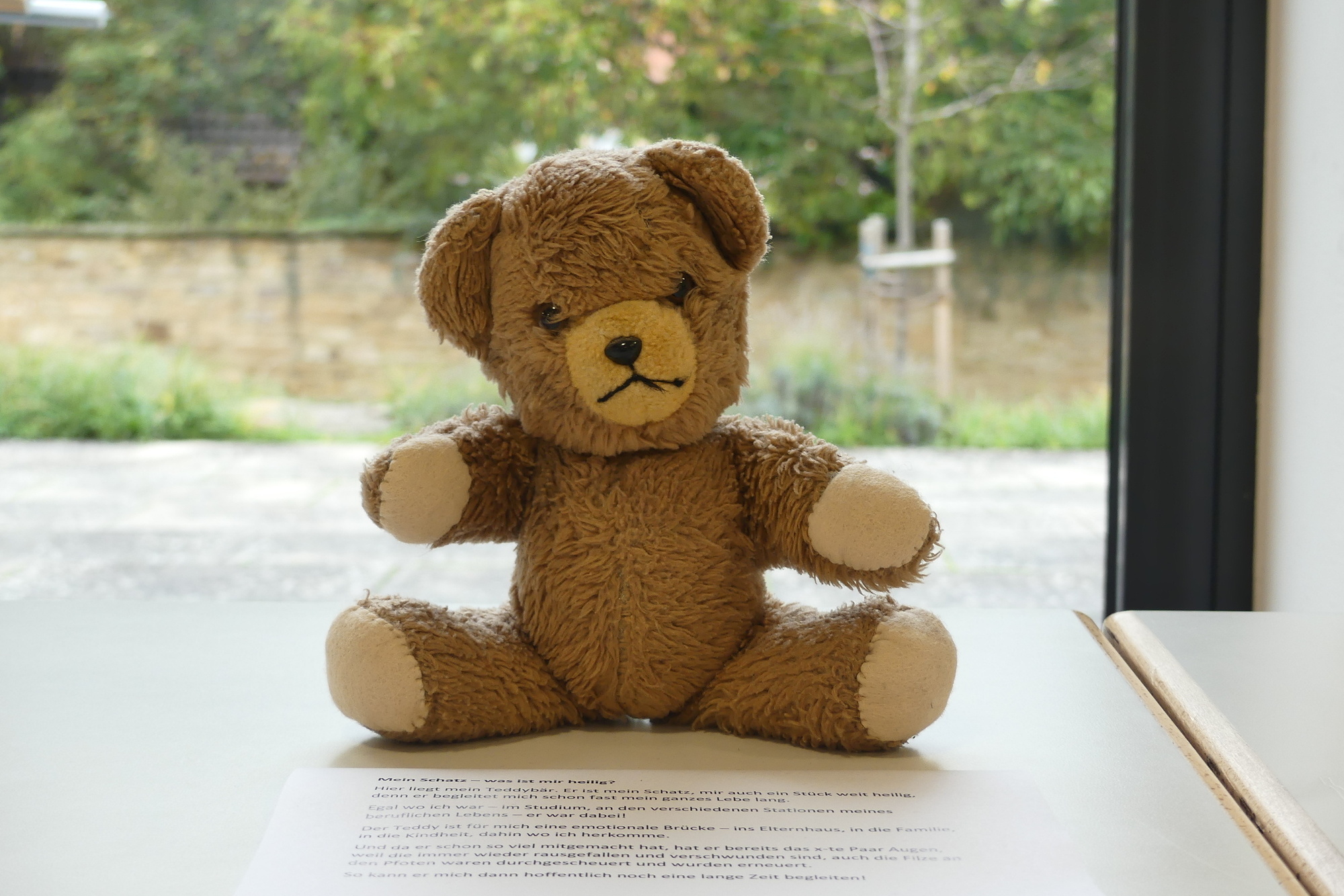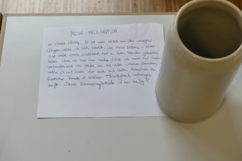 Bei der anschließenden Ausstellung im Pfarrer-Hersam-Haus konnten Alltagsgegenstände betrachtet werden, die durch verschiedene Lebensumstände zu kleinen Heiligtümern das Alltags werden können - so auch neben religiösen Gegenständen ein Mutterschaftspass, Omas Geschirr und ihre Schürze, ein Teddybär und ein Poesiealbum.