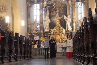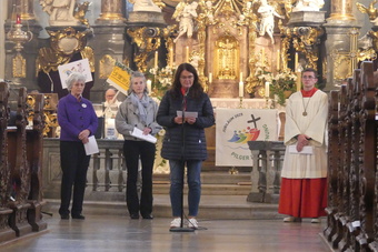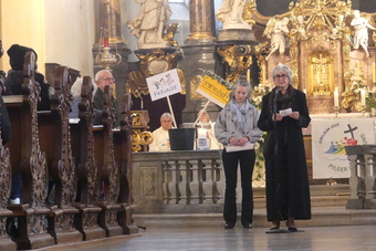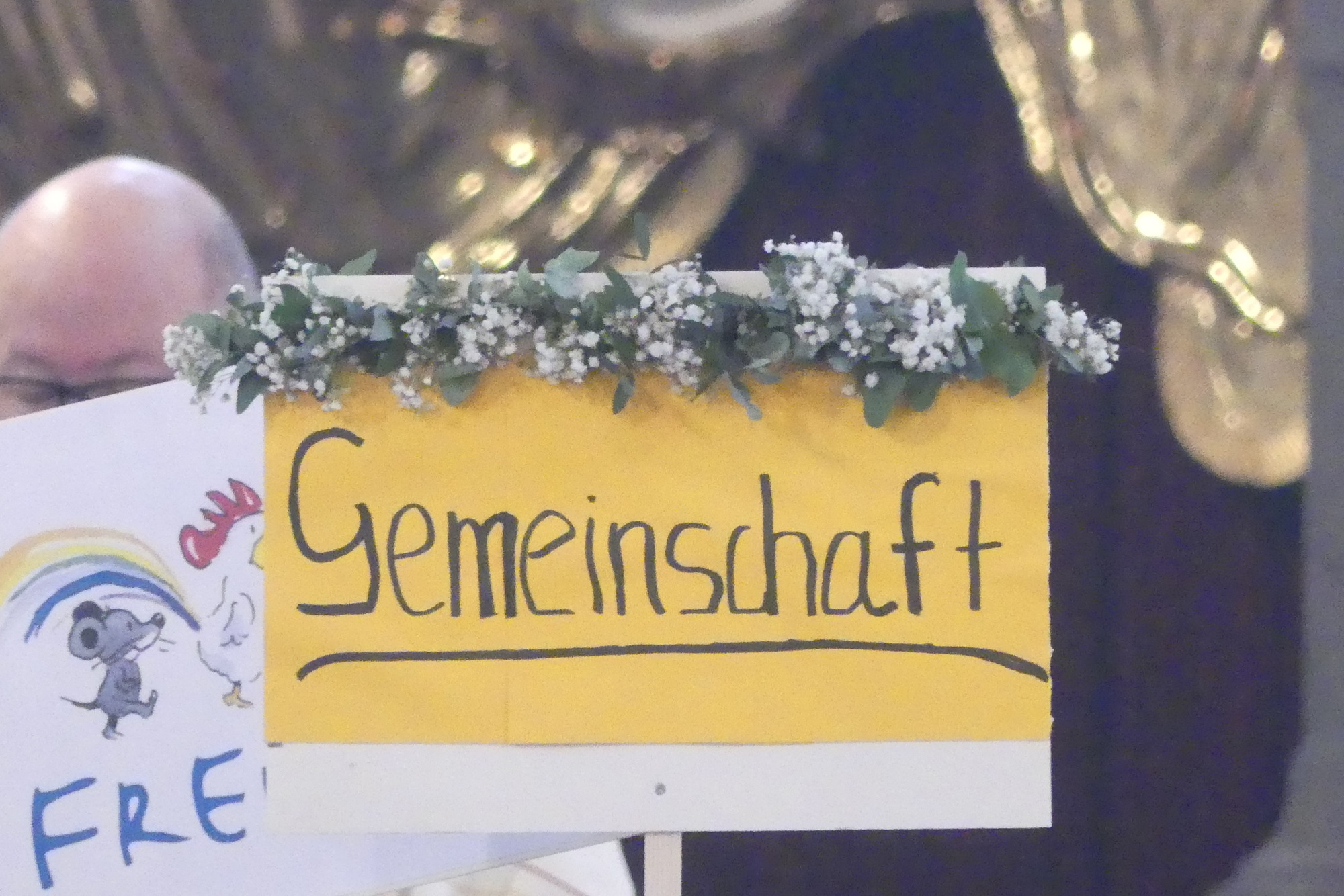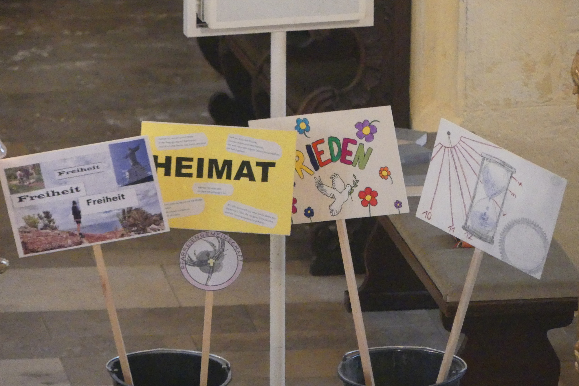 Im Zentrum standen dabei "heilige Begriffe" wie z.B. Familie, Freundschaft, Frieden und Gemeinschaft. Diese Begriffe, anschaulich auf großen Schildern präsentiert, wurden während des Gottesdienstes durch Ehrenamtliche näher erläutert.