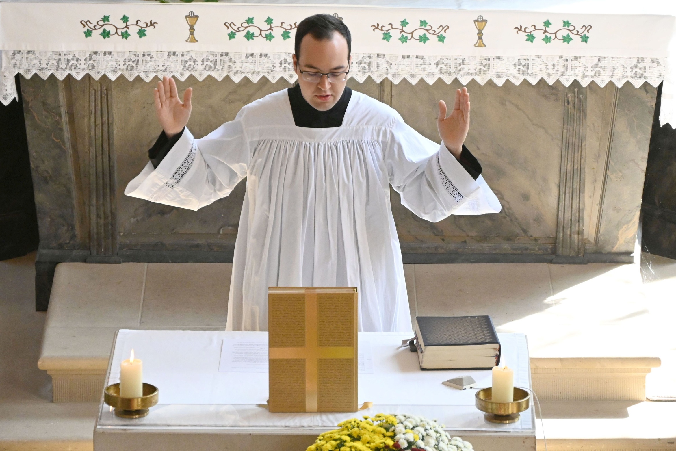Schmitt wirkte während der Feier weder aufgeregt noch nervös. Mit Freude, Souveränität, nachdenklichen Texten und passenden Gesangseinlagen gestaltete er den Gottesdienst. „Ich bin gespannt, was auf mich zukommt und wohin der weitere Weg, auch in anderen Orten, führen wird“, sagte der Gottesdienstbeauftragte. Als Gottesdienstleiter versteht er seine Aufgabe darin, das Wort Gottes in den Gemeinden zu verkünden und durch Wort-Gottes-Feiern, insbesondere angesichts des zunehmenden Priestermangels, den Gottesdienstbetrieb zu sichern und lebendig zu gestalten.