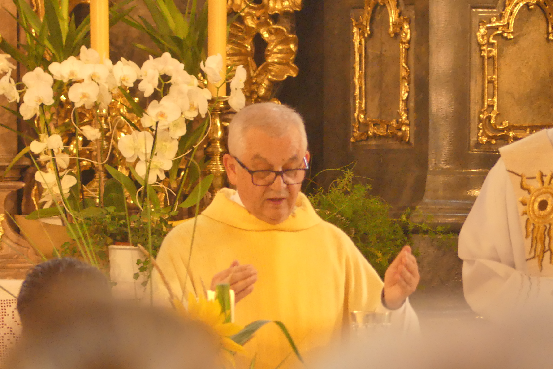 Über 90 Ministrantinnen und Ministranten aus allen Ortschaften der Pfarreingemeinschaft begleiteten Pfarrer Stefan Mai bei seinem letzten Gottesdienst in der Pfarreiengemeinschaft St. Franziskus am Steigerwald. Nach 17 Jahren seelsorgerlichen Wirkens in Gerolzhofen und Umgebung wird er zukünftig als Wallfahrtsseelsorger in Maria Limbach tätig sein. Sehr viele Gläubige kamen, so dass der Steigerwalddom so gut wie selten gefüllt war. - wer Glück hatte, bekam noch einen Stehplatz.