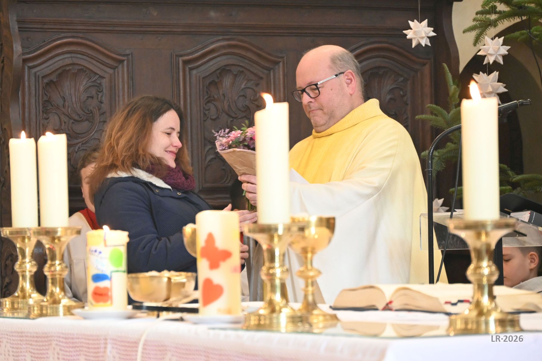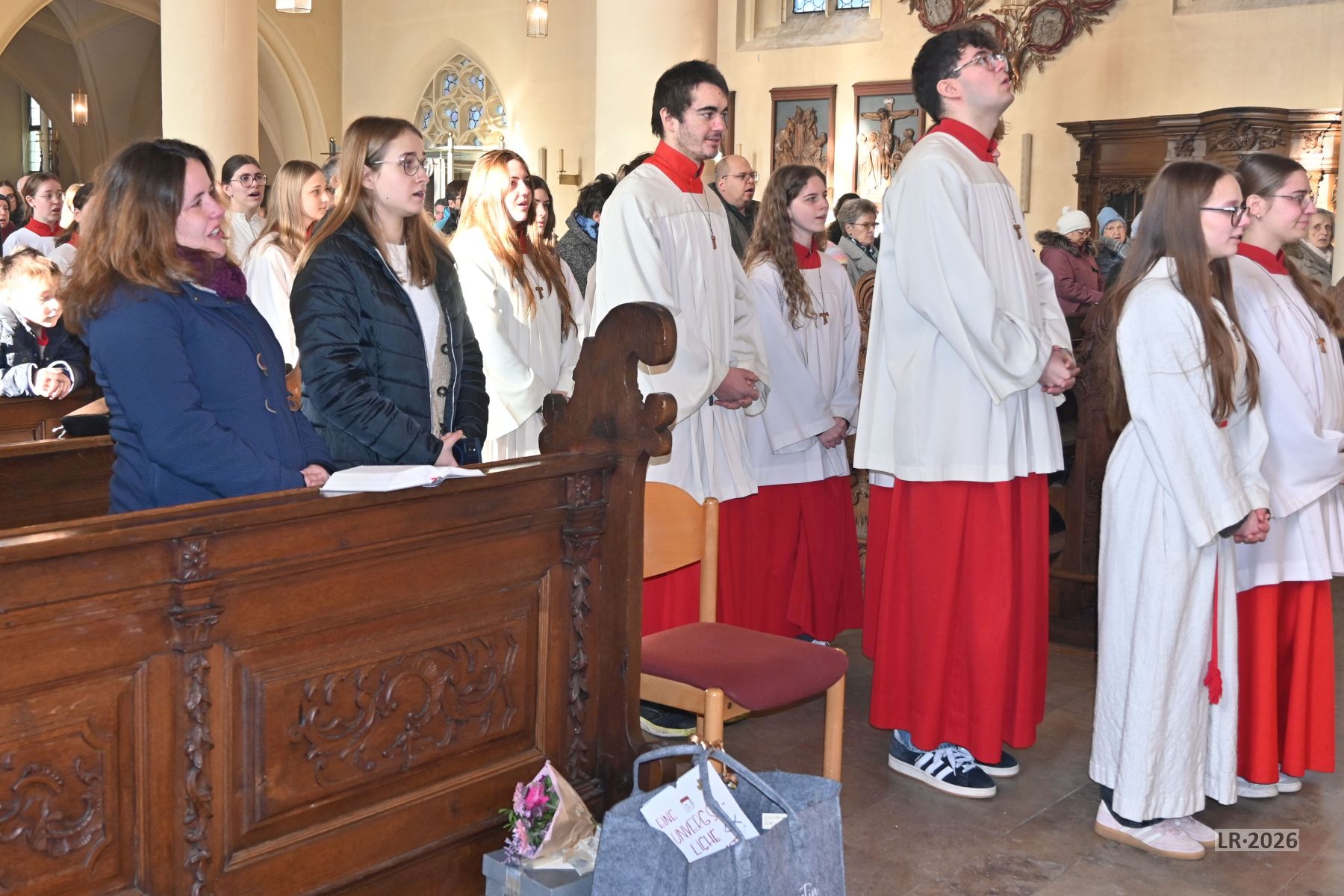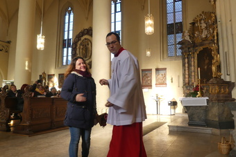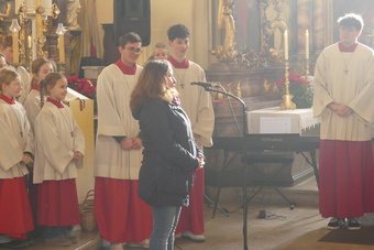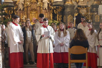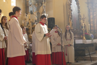 Am Ende des Gottesdienstes bedankten sich Pfarrer Andreas Engert, Lucas Schmitt als Vorsitzender des Gemeinsamen Pfarrgemeinderates und vor allem die Ministranten und Ministrantinnen bei Franziska Reichert für die gute Zusammenarbeit und ihren seelsorgerlichen Dienst über die Jahre hinweg. Besonders betont wurde ihre freundliche und liebenswerte Art, auf Menschen zuzugehen.