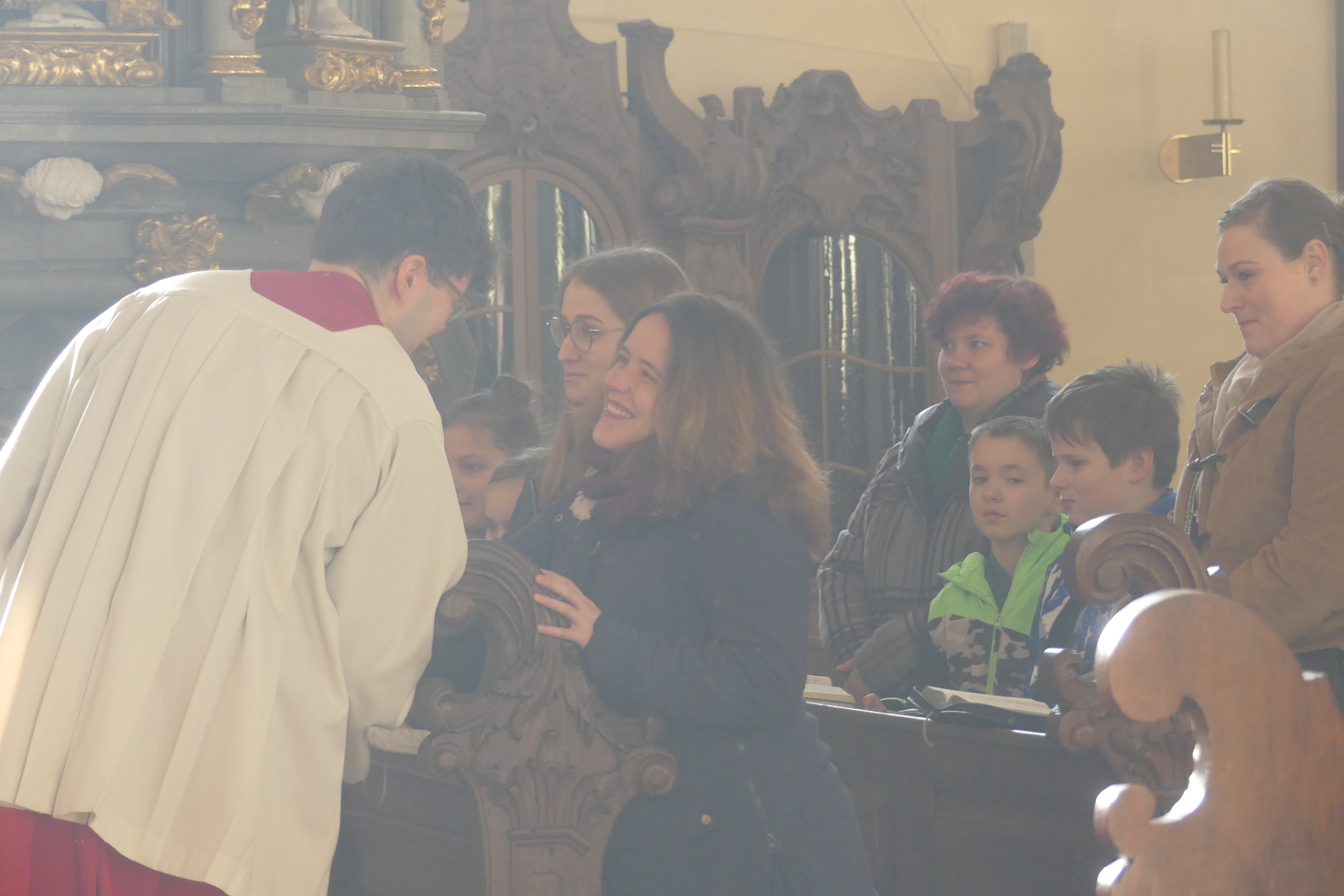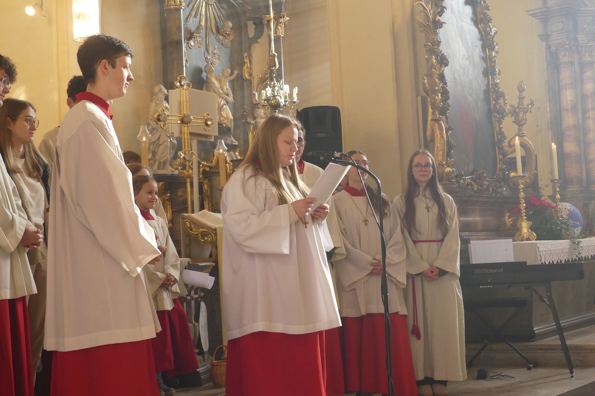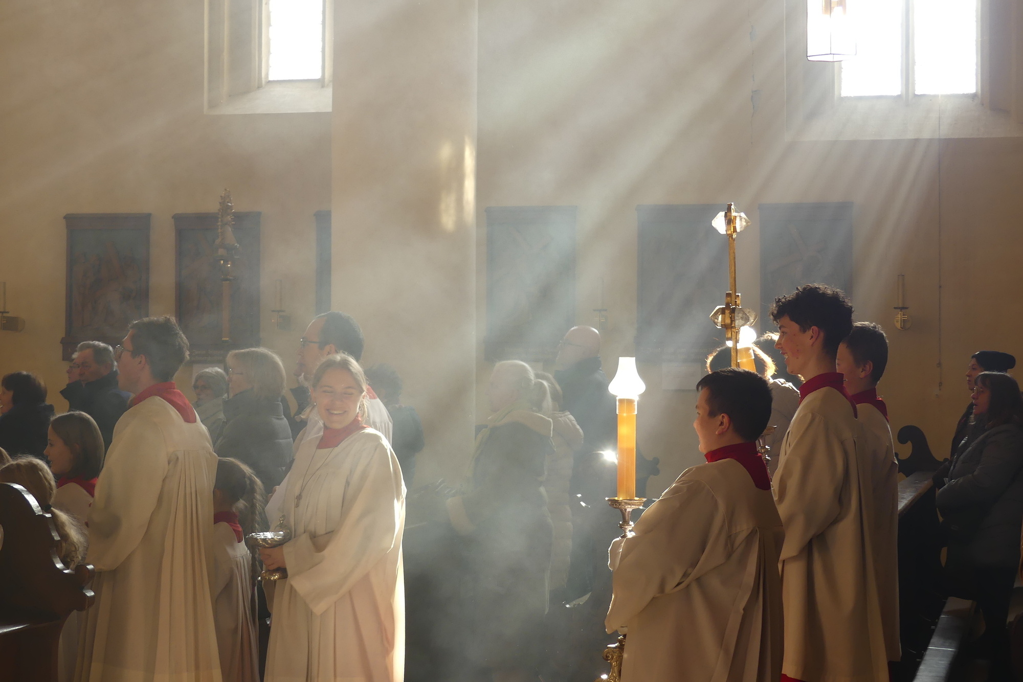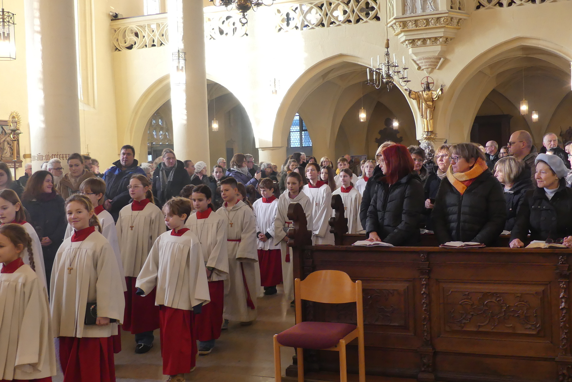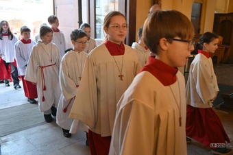 „Taufe des Herrn“ in Gerolzhofen: Über vierzig „Minis“ aus dem ganzen Pastoralen Raum ziehen feierlich ein. Die Wintersonne taucht das Gotteshaus in Verbindung mit dem verwendeten Weihrauch in eine mystische Atmosphäre. Wer an diesem Tag diesen Gottesdienst besucht, wird nicht unbewegt nach Hause gehen – denn es steht neben alledem eine Verabschiedung an: Pastoralreferentin Franziska Reichert geht in die Elternzeit und wird danach nicht mehr im Pastoralen Raum Gerolzhofen tätig sein.