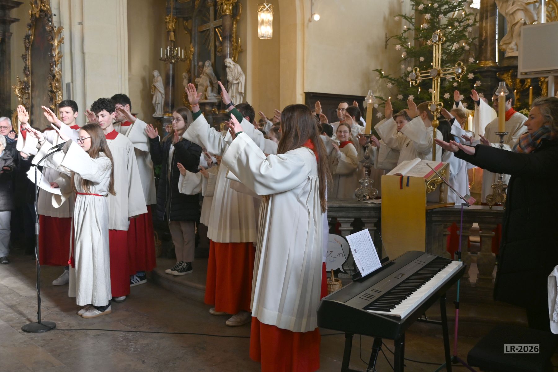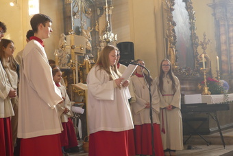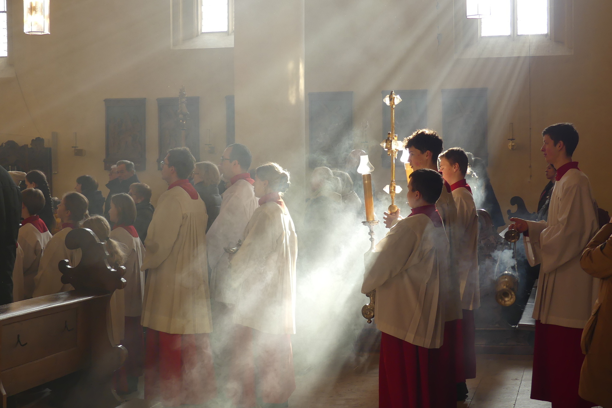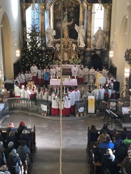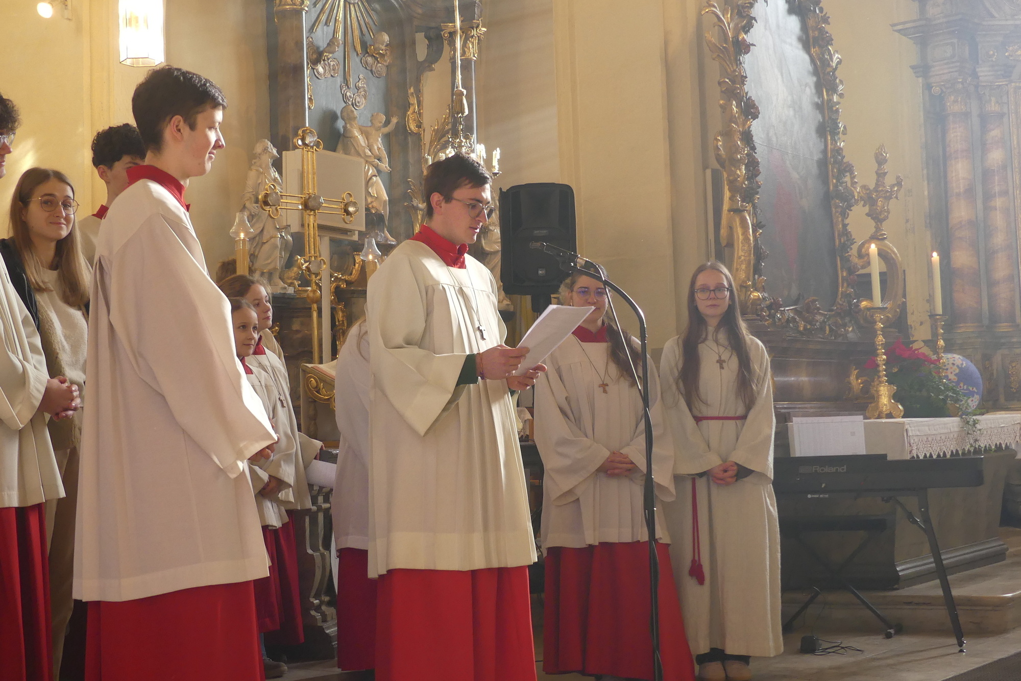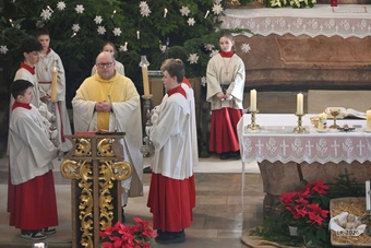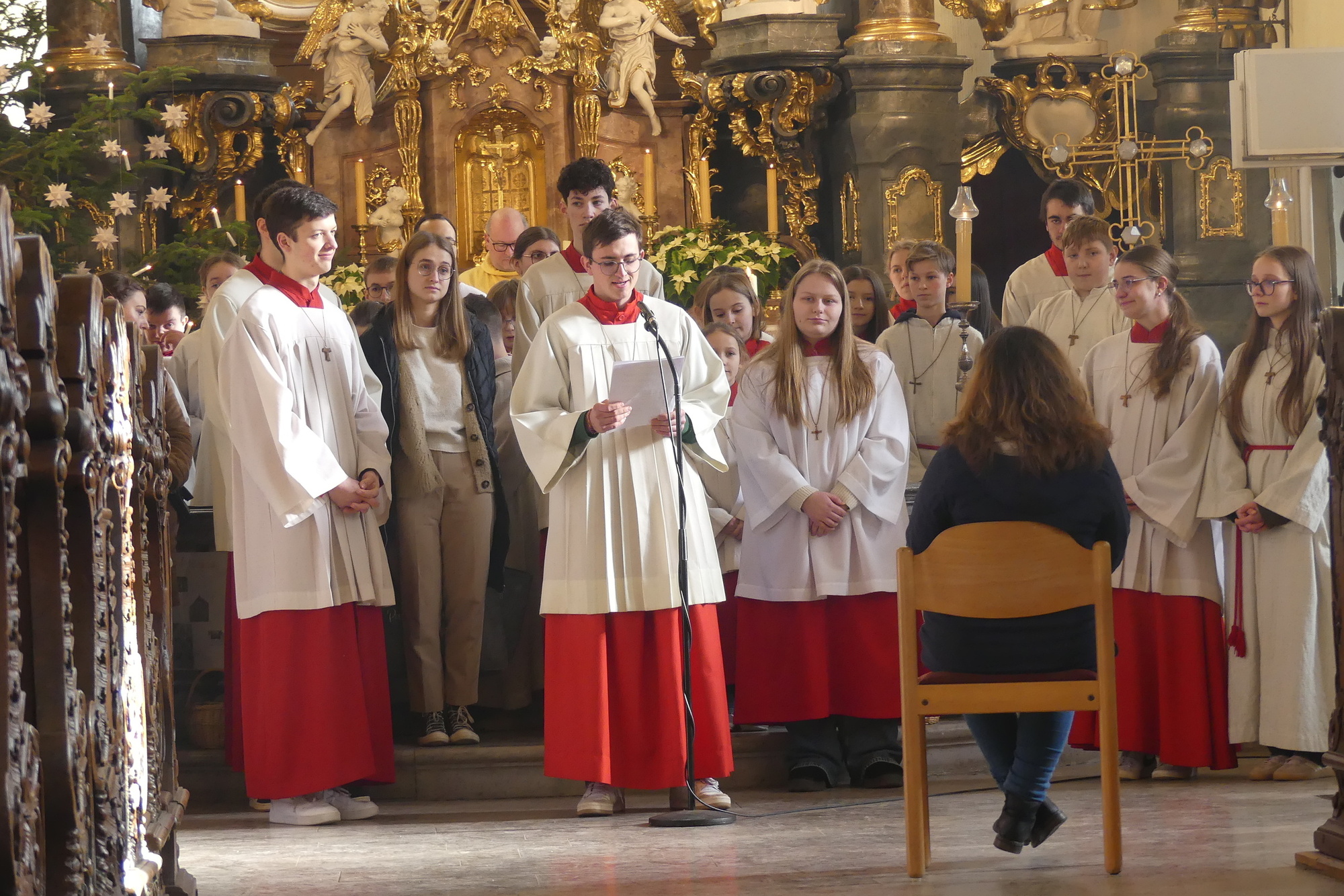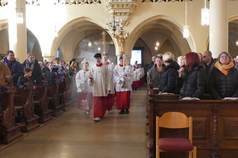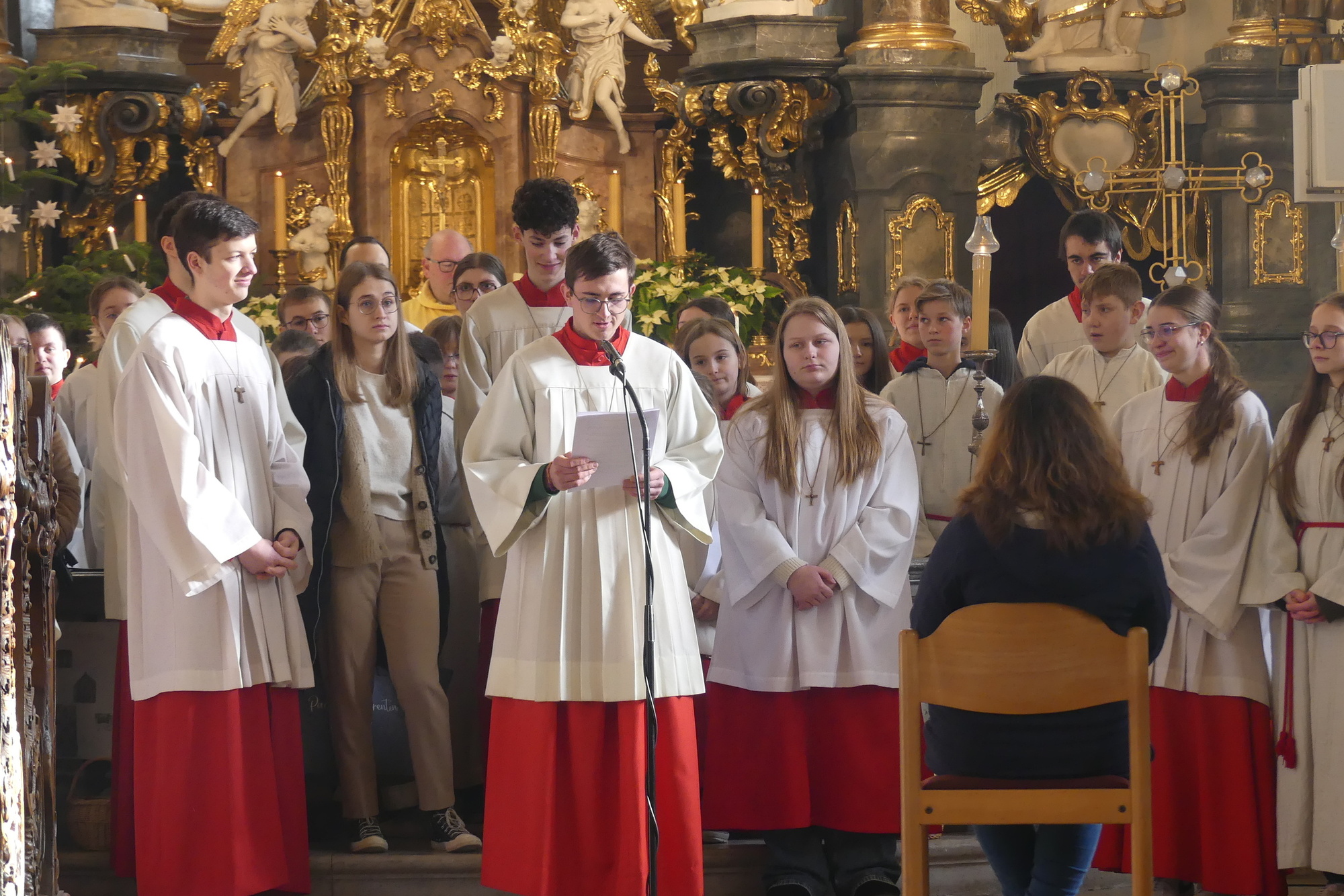 „Taufe des Herrn“ in Gerolzhofen: Über vierzig „Minis“ aus dem ganzen Pastoralen Raum ziehen feierlich ein. Die Wintersonne taucht das Gotteshaus in Verbindung mit dem verwendeten Weihrauch in eine mystische Atmosphäre. Wer an diesem Tag diesen Gottesdienst besucht, wird nicht unbewegt nach Hause gehen – denn es steht neben alledem eine Verabschiedung an: Pastoralreferentin Franziska Reichert geht in die Elternzeit und wird danach nicht mehr im Pastoralen Raum Gerolzhofen tätig sein.