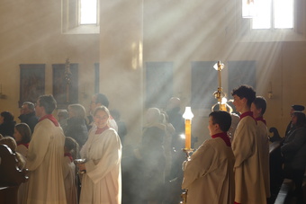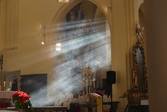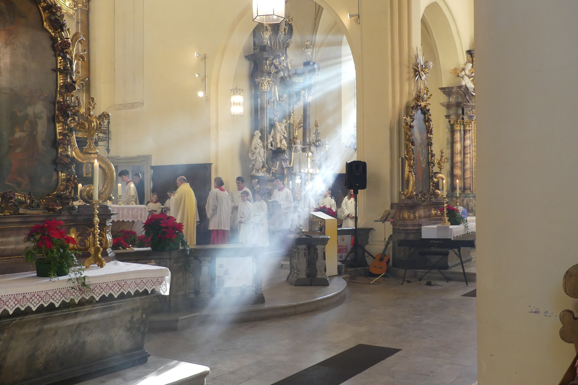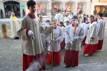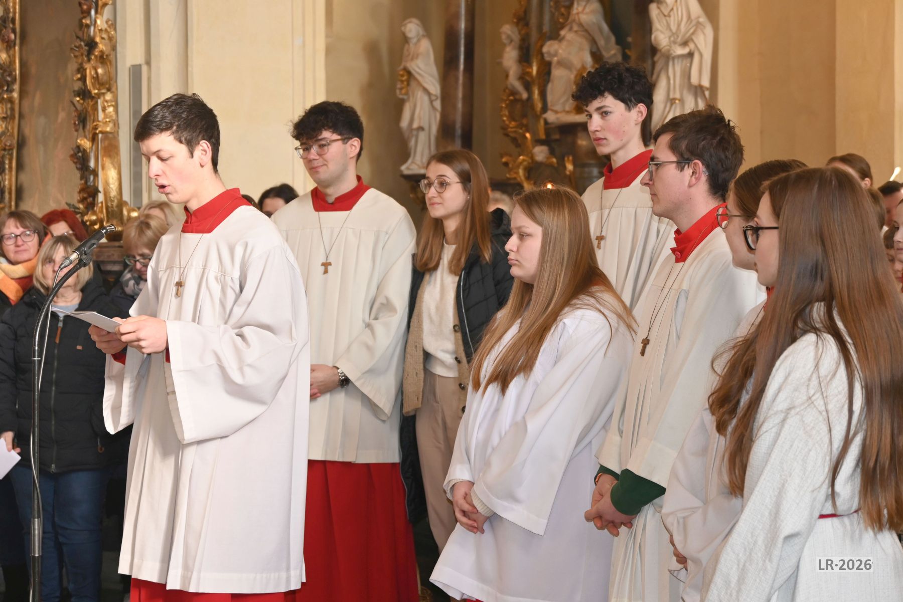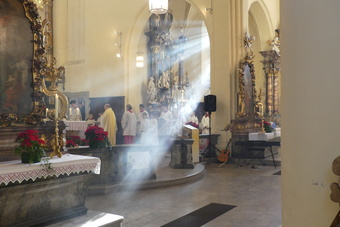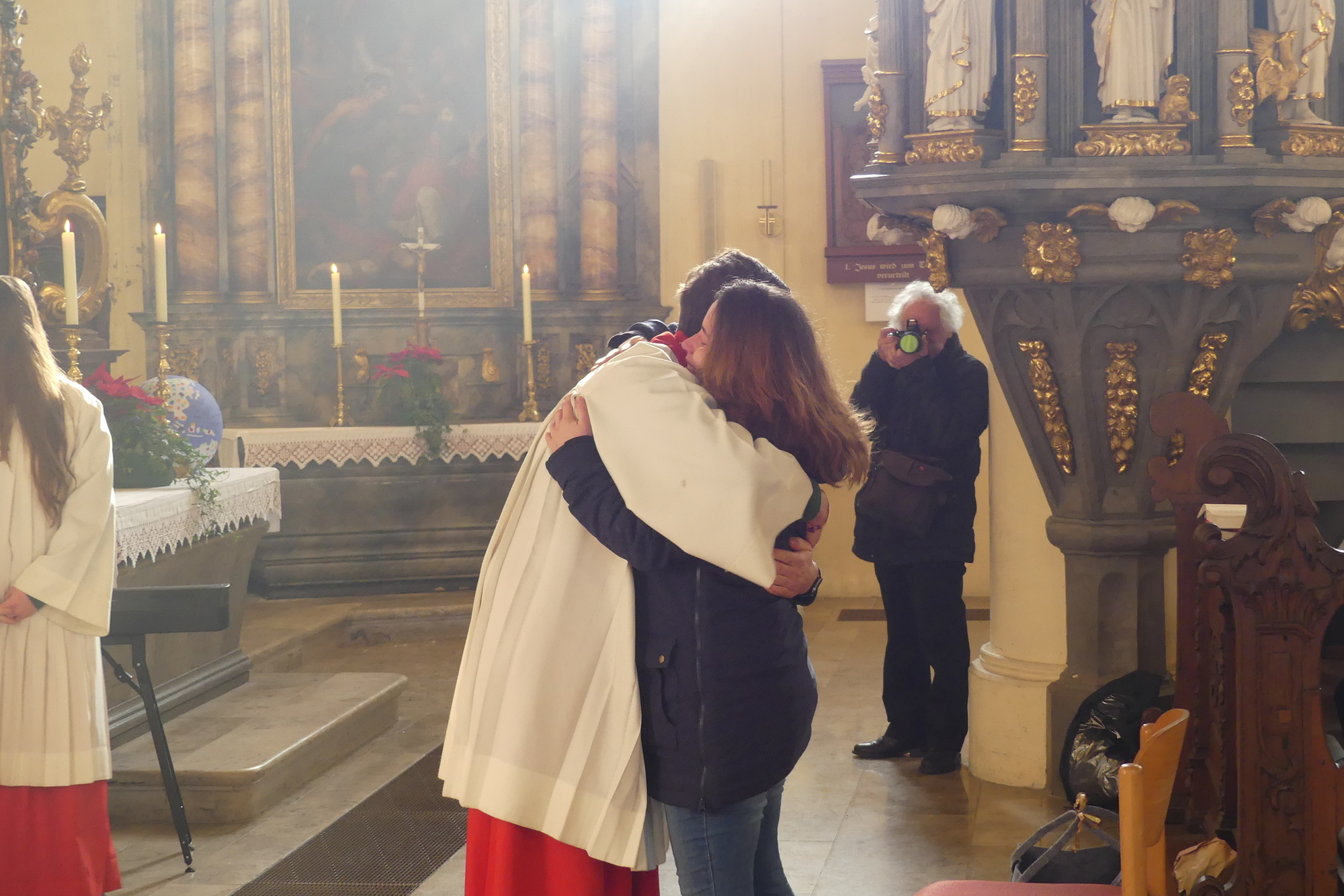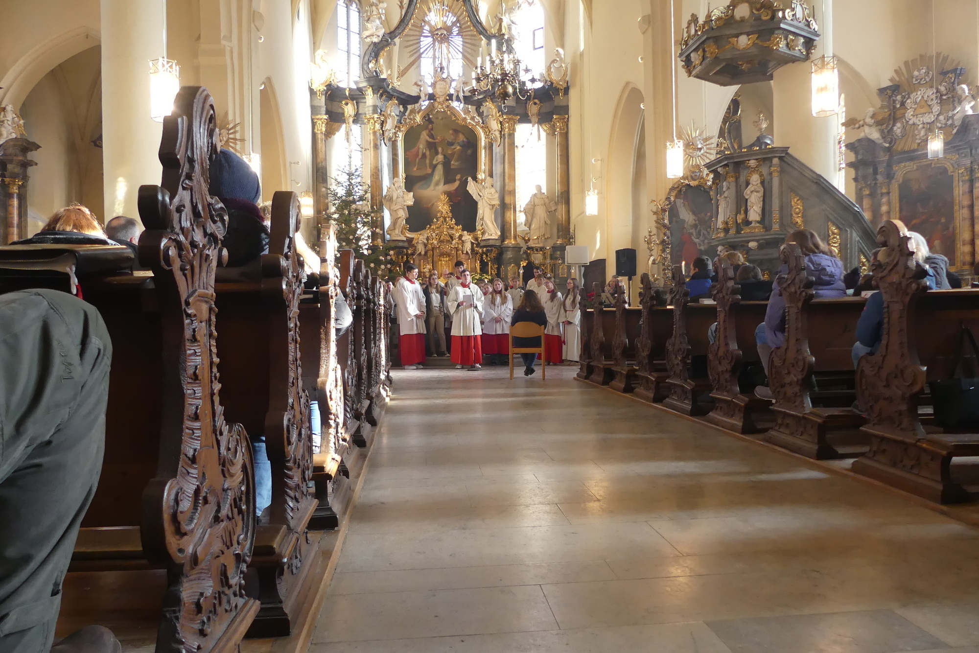 „Taufe des Herrn“ in Gerolzhofen: Über vierzig „Minis“ aus dem ganzen Pastoralen Raum ziehen feierlich ein. Die Wintersonne taucht das Gotteshaus in Verbindung mit dem verwendeten Weihrauch in eine mystische Atmosphäre. Wer an diesem Tag diesen Gottesdienst besucht, wird nicht unbewegt nach Hause gehen – denn es steht neben alledem eine Verabschiedung an: Pastoralreferentin Franziska Reichert geht in die Elternzeit und wird danach nicht mehr im Pastoralen Raum Gerolzhofen tätig sein.