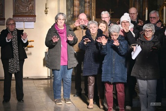 Manche Träne der Rührung war zu sehen, als die Gottesdienstteilnehmenden ermutigt wurden, ihre Arme zu einer Segensgeste zu formen, um so Franziska Reichert für die Zukunft mit Gottes Segen zu stärken.