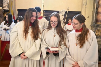 Franziska Reichert kam zunächst als Pastoralassistentin nach Gerolzhofen, seit 2024 wirkte sie als Pastoralreferentin. Neben Schulunterricht, Begleitung des Gemeindeteams in Lülsfeld, Kontakten zum Kindergarten, Begleitung des ökumenischen Kinderkirchenteams und vielem mehr, war ein Hauptschwerpunkt ihrer Arbeit die Weiterentwicklung der Ministrantenarbeit im Pastoralen Raum. Die große Schar der „Minis“, die zu ihrer Verabschiedung gekommen waren, zeigte, wie sehr dies „Franzi“ gelungen ist und wie beliebt sie bei der Jugend ist. Gerne erinnern sich die jungen Menschen an zahlreiche Aktionen mit ihr, angefangen von Freizeitaktivitäten bis hin zu Fahrten z.B. nach Rom und Barcelona. Darüber hinaus entwickelte sie auch zusammen mit ihnen neue liturgische, jugendgemäße Formen.
