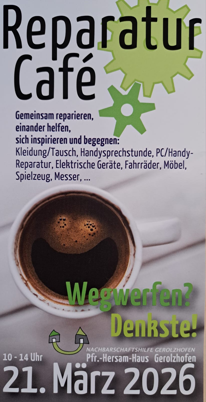 Reparatur-Café am 21. März 2026 im Pfarrer-Hersam -Haus